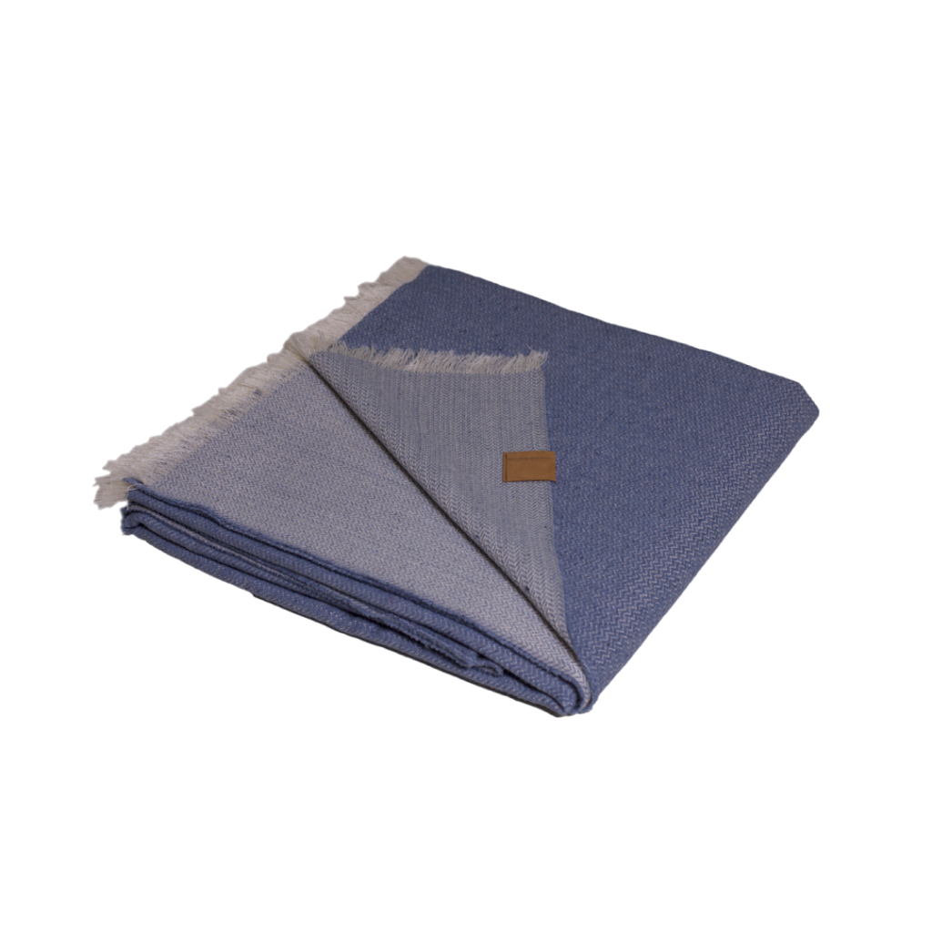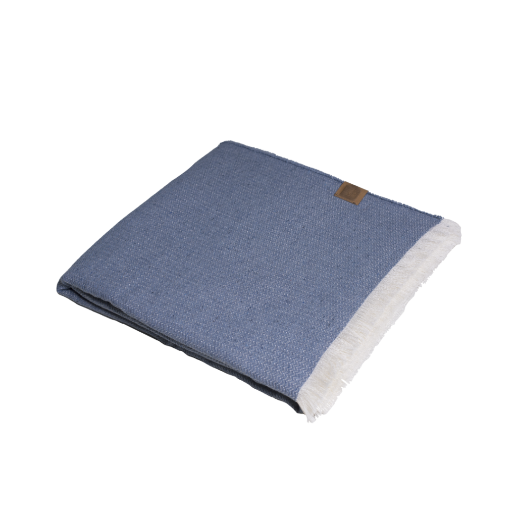 De Eastown plaid is stijlvol, veelzijdig, duurzaam geproduceerd én perfect om je warm te houden als het wat frisser wordt. Of je nu lekker op de bank wilt liggen of buiten wilt genieten van een zomerse avond, deze plaid is de perfecte metgezel. Een fijne grote zachte plaid gemaakt van Duitse wol, lenzing viscose en gerecycled katoen. De kleur van de garens komt van het gerecyclede katoen in de gebruikte garens, er is dus geen verfstof nodig geweest om de ze plaid te kleuren. Bij de denim variant is gebruikgemaakt van gerecyclede jeans in de inslag. De broeken worden zorgvuldig gesorteerd, vervezeld en gesponnen tot garen. Van dat garen weven wij deze unieke plaid. Door het gebruikte weefpatroon is de stof aan de voorkant blauw of bruin van kleur en zie je aan de achterkant de ecru kleurige wollen garens. Het bruine label dat bevestigd is aan de plaids is gemaakt van vegan materiaal, een duurzaam label.