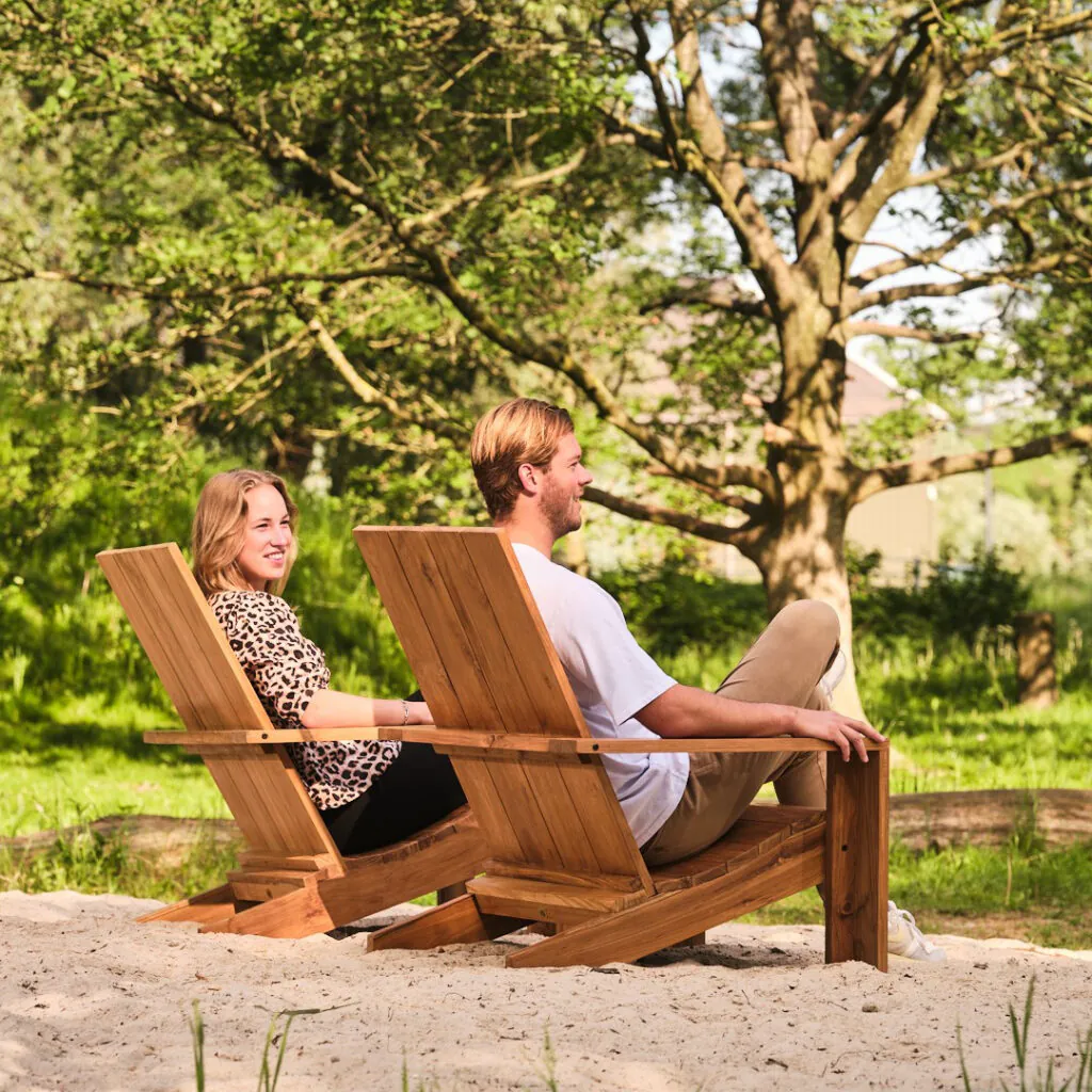 De Grizzly Adirondack relaxstoel is niet alleen robuust en comfortabel, maar ook zeer veelzijdig. Met zijn tijdloze ontwerp past ‘ie perfect in elke omgeving. Chill in stijl in je tuin, op je terras of op je veranda. En niet alleen dat, deze Bear chair is ook nog eens een eyecatcher en geeft jouw buitenruimte net dat beetje extra flair. Of je nu een boek leest, een drankje drinkt of gewoon geniet van de omgeving, deze adirondack stoel biedt het ultieme comfort en ontspanning. Gemaakt van duurzaam teakhout, heeft deze stoel bijna geen onderhoud nodig en wordt hij na verloop van tijd geleidelijk grijs, wat ‘m nog stijlvoller maakt. Met een beetje zeepwater en een zachte borstel of doek haal je zo eventuele aanslag weg. Dus leun achterover, relax en enjoy the vibes!